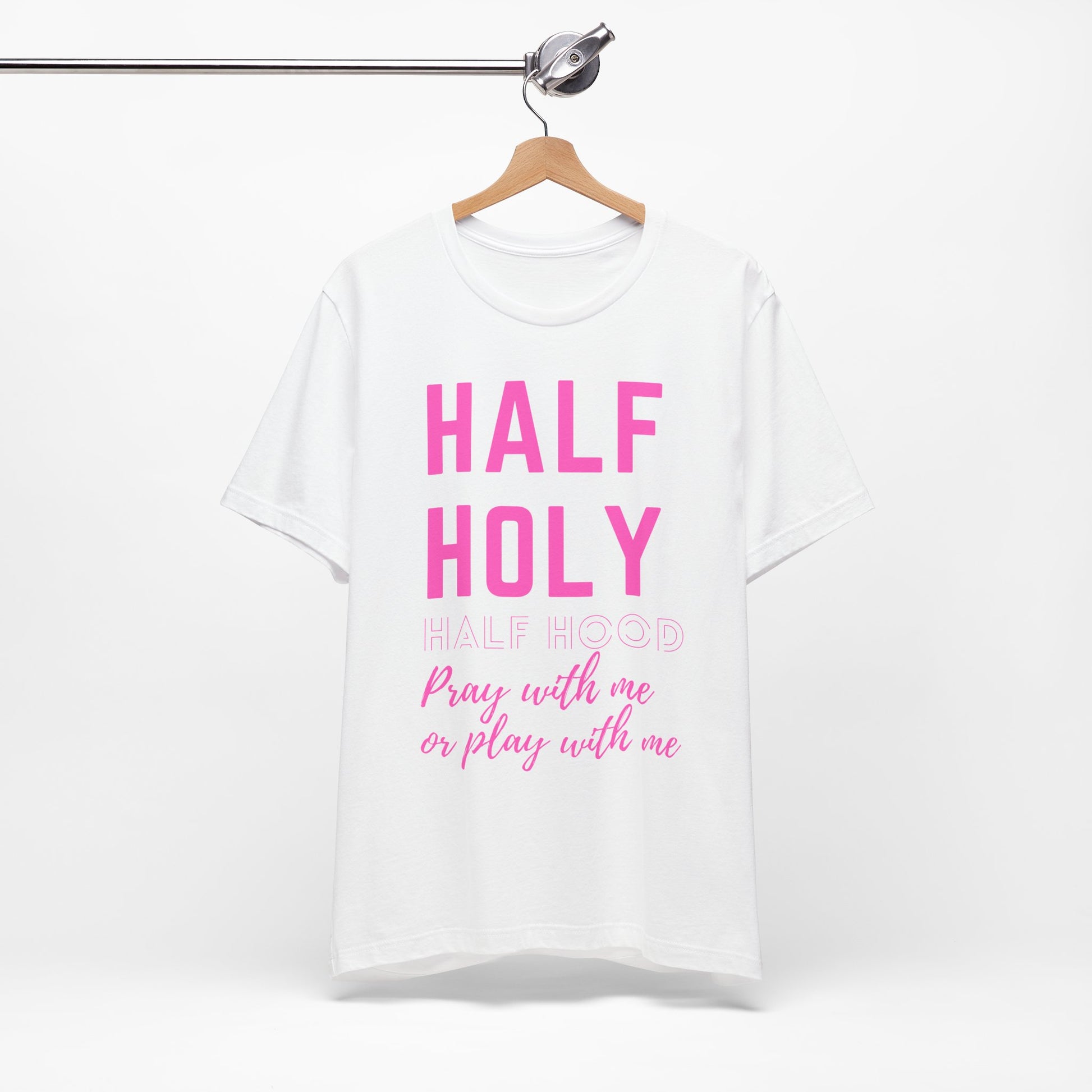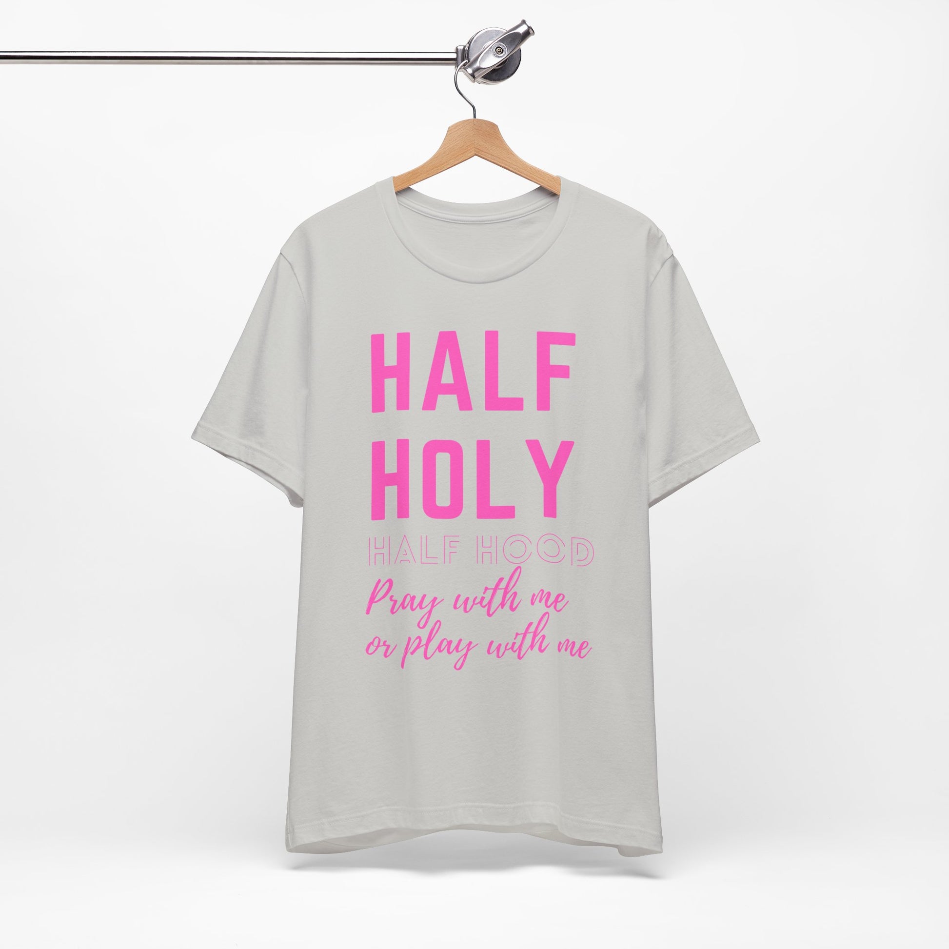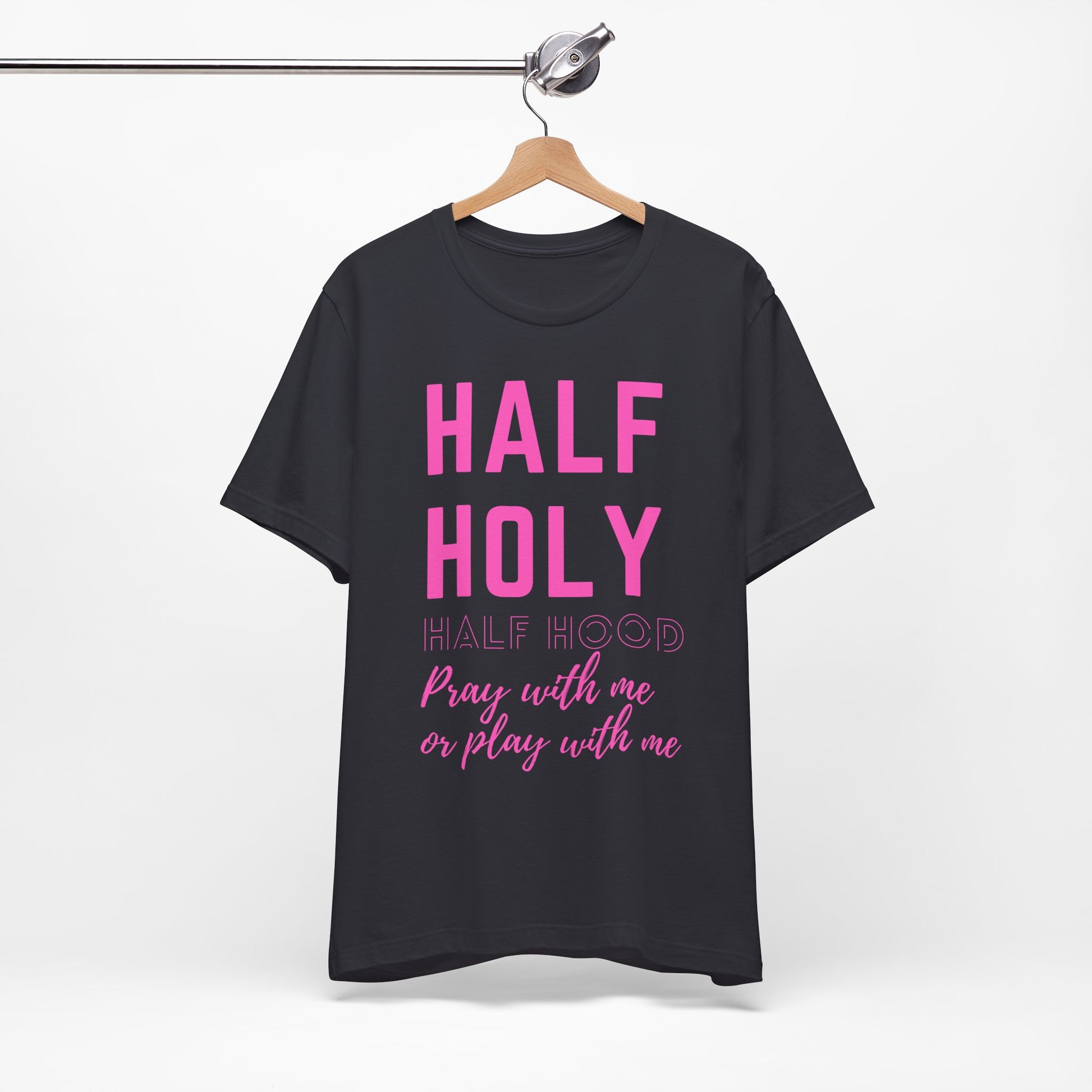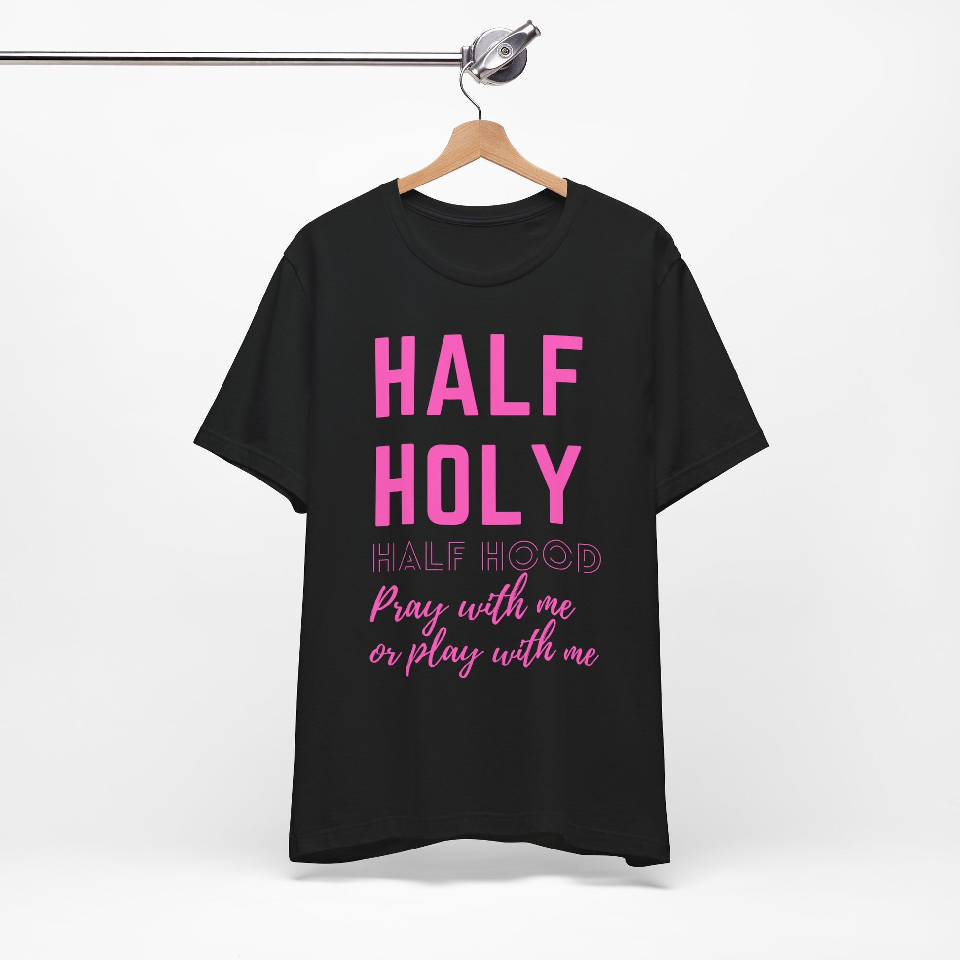 Half Holy Half Hood Tee - "Pray with me or Play with me" Graphic T-Shirt