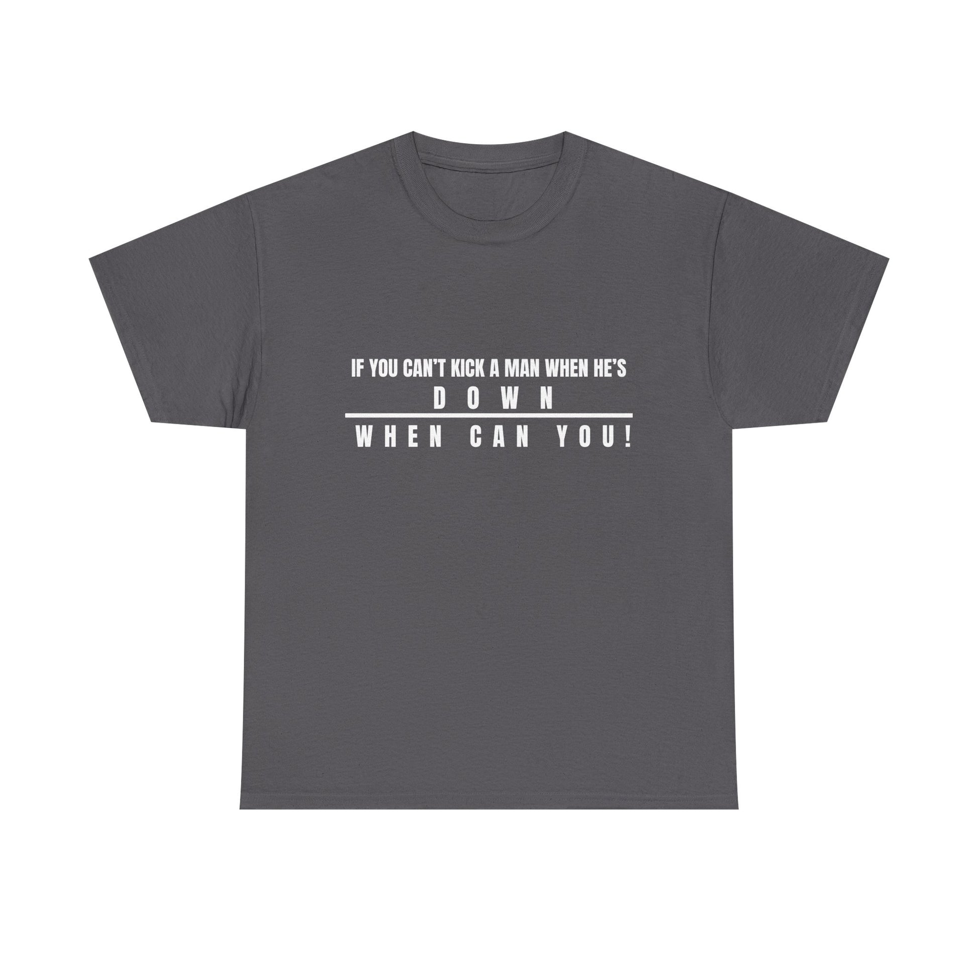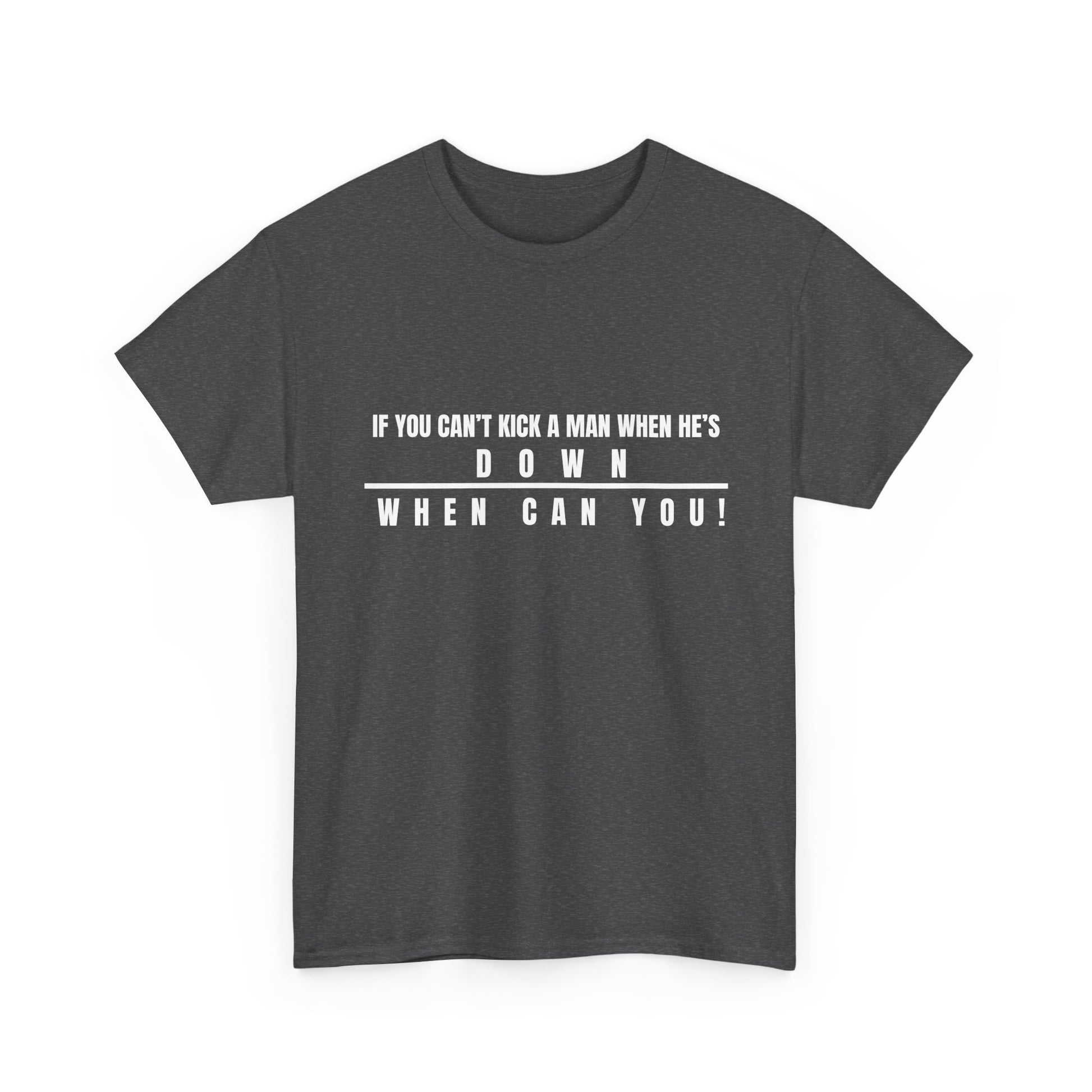 If You Can't Kick a Man When He's Down, When Can You Unisex Heavy Cotton Tee -