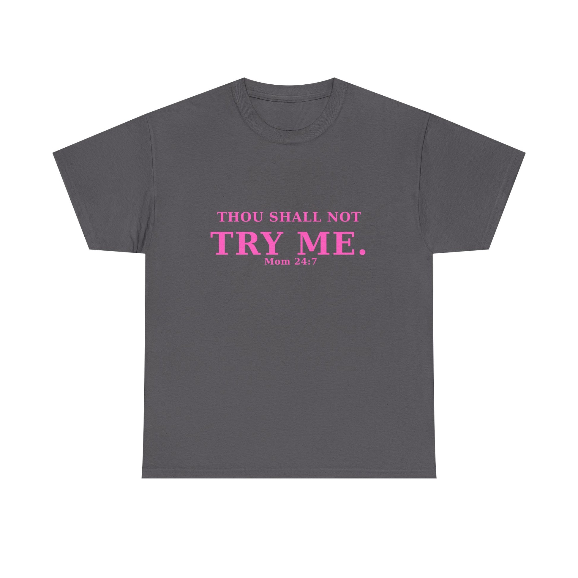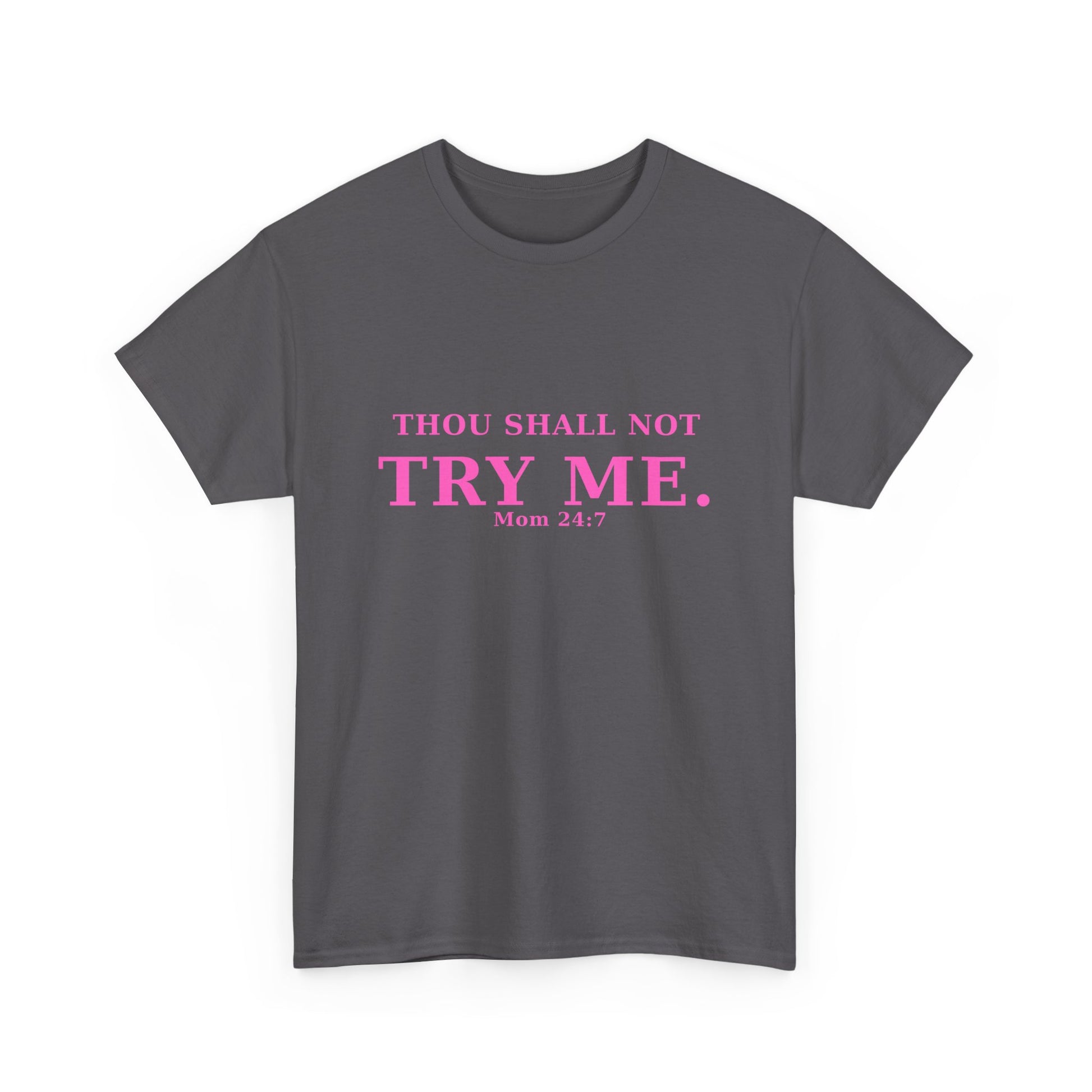 “Thou Shall Not Try Me – Mom 24:7 | Sarcastic Christian T-Shirt”