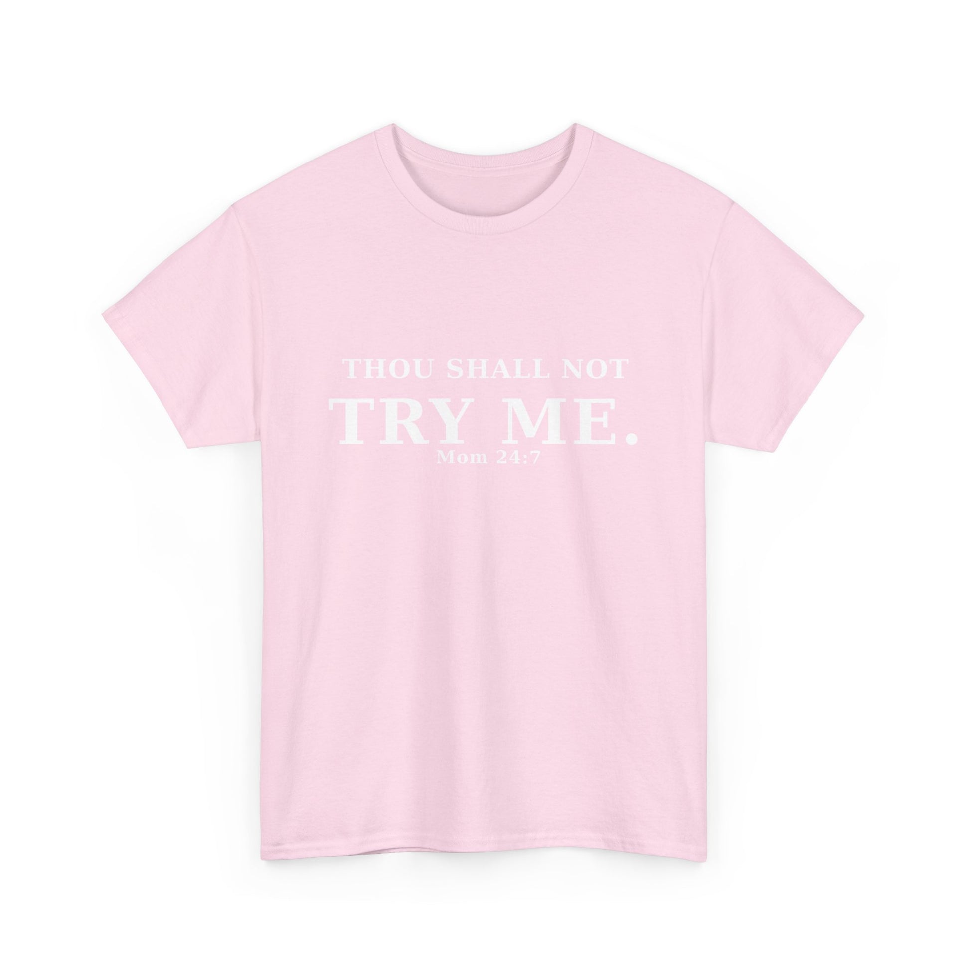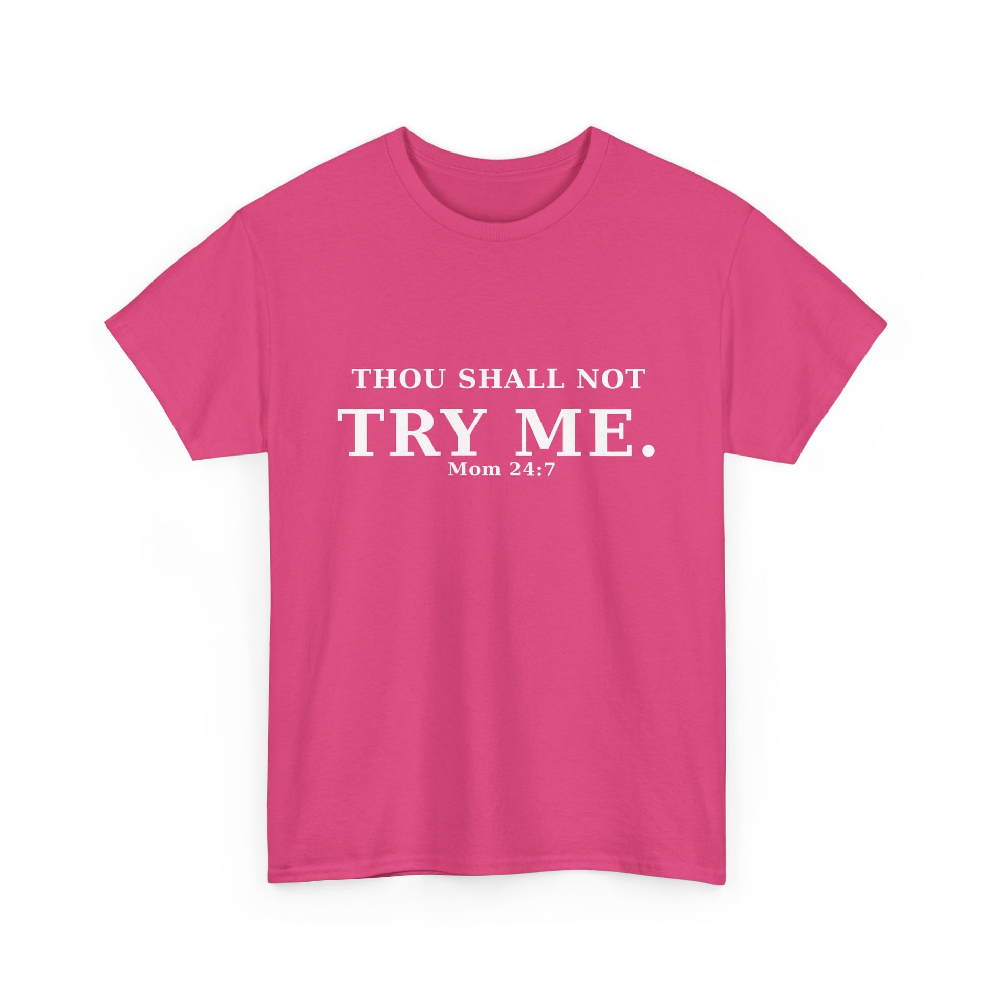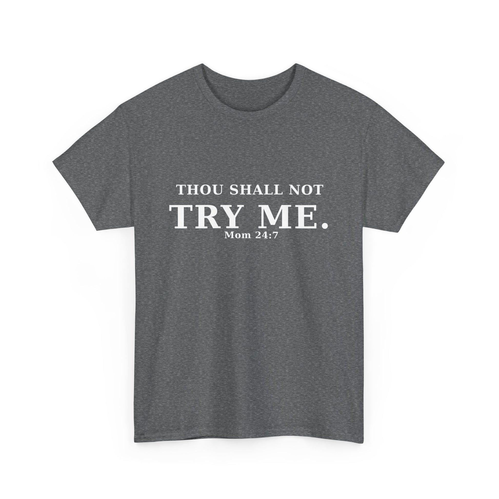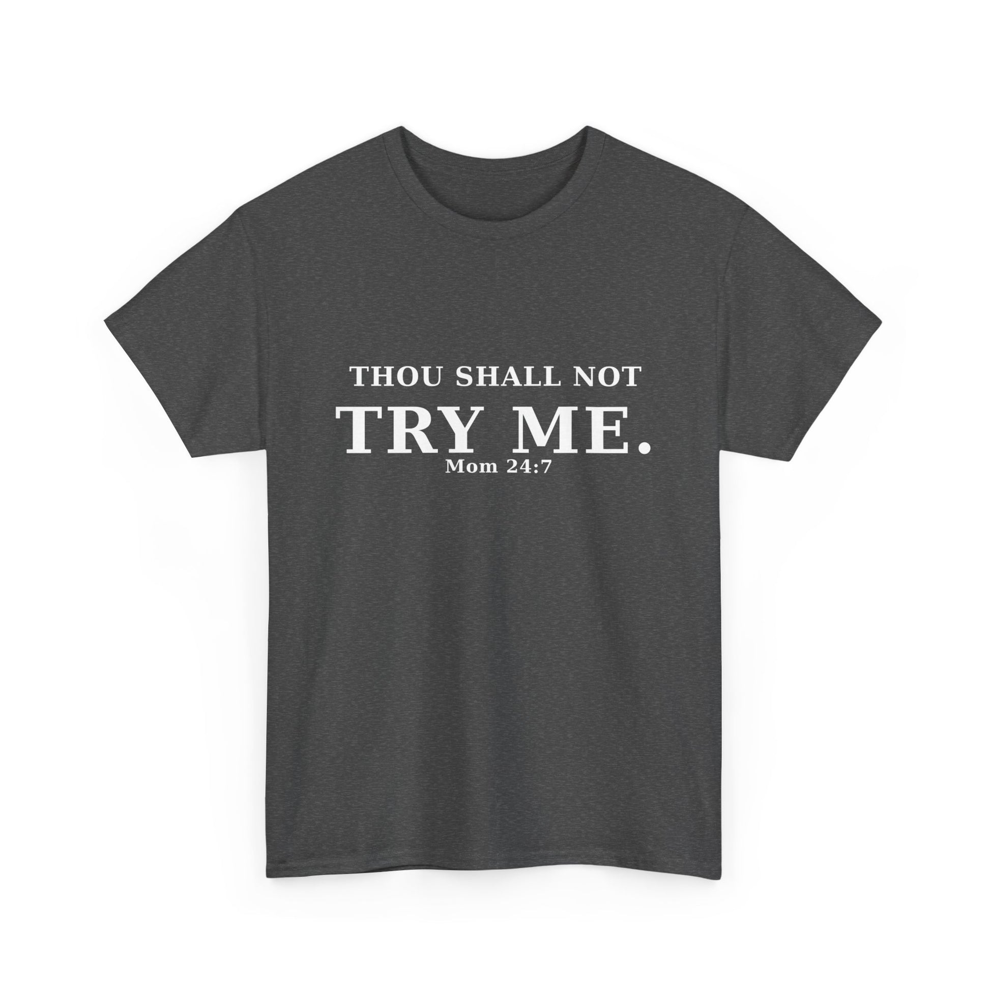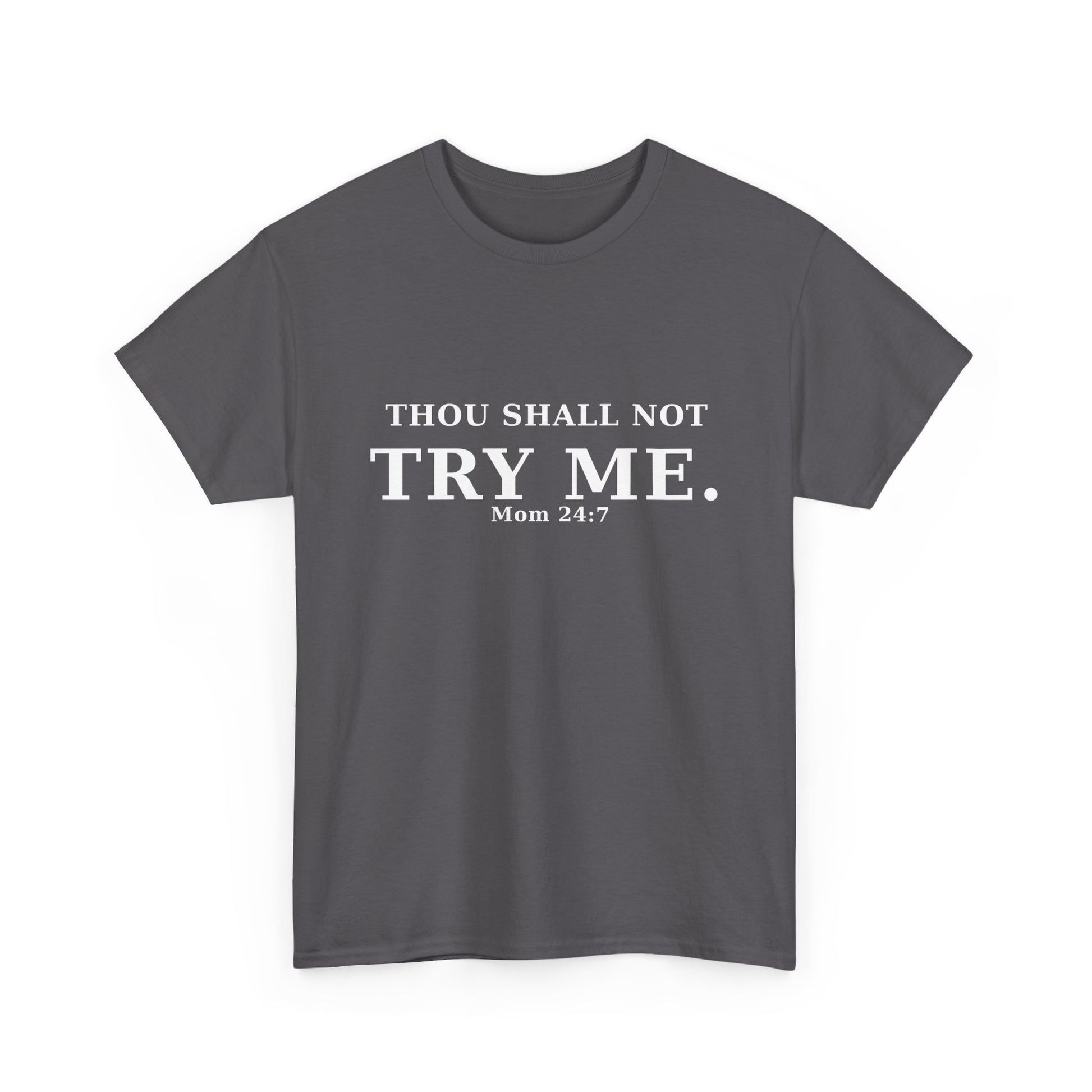 “Thou Shall Not Try Me – Mom 24:7 | Sarcastic Christian T-Shirt”